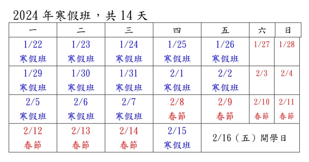 2024年寒假上課日期 一月 10 2024 分享此文: 分享到 X(在新視窗中開啟) X 分享到 Facebook(在新視窗中開啟) Facebook 喜歡 正在載入... 發表者:張晉榮 檢視 張晉榮 的所有文章